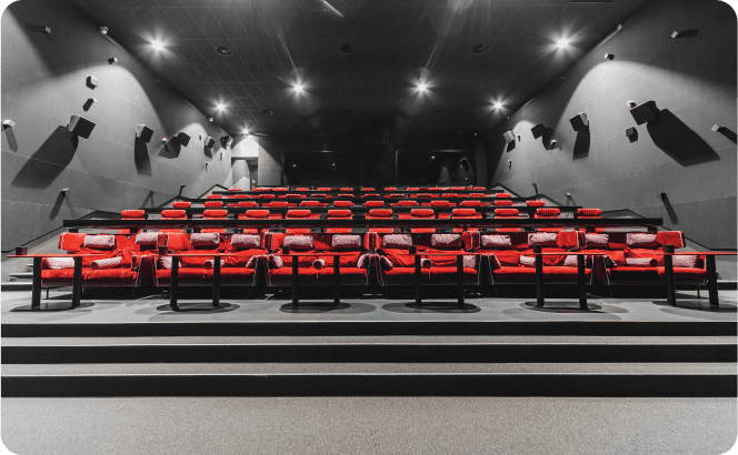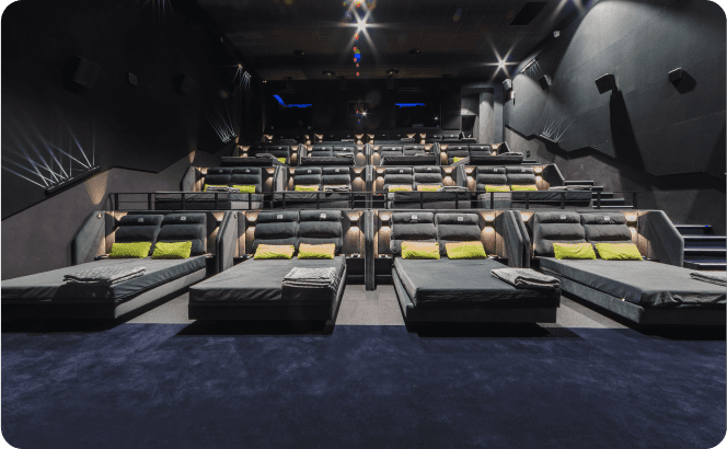 Кинопространство mooon в ТРЦ Palazzo представлено уникальными концептуальными кинозалами с запоминающимся тематическим дизайном, которые придутся по душе не только взрослым, но и совсем маленьким киноманам. Кинопространство дополняют и эксклюзивные варианты, обеспечивающие новый уровень комфорта: 8 закрытых приватных комнат, находящихся за стеклом в самом кинозале и рассчитанных на 2-4 гостей, для которых это помещение превращается в персональный кинотеатр. Идеальный вариант для влюблённых пар, желающих уединения, а также родителей с маленькими детьми. Кинопространство mooon в ТРЦ Palazzo представлено 7 концептуальными залами.